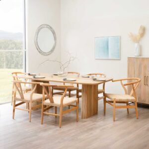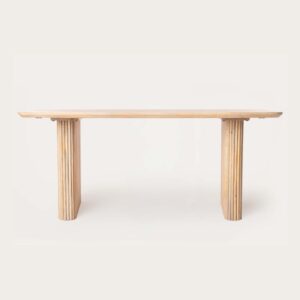The Austin Loft 94″ Dining Table in Natural Sheesham makes a striking statement with its expansive scale and bold, architectural form. Crafted from solid Sheesham wood, each table showcases the dramatic grain variation and organic character of this richly toned hardwood. Its substantial presence and clean lines make it ideal for open-plan dining rooms, commercial spaces, or curated design projects. Built for long-lasting appeal, it’s a premium option for designers and wholesale professionals seeking statement-making solid wood furniture.
