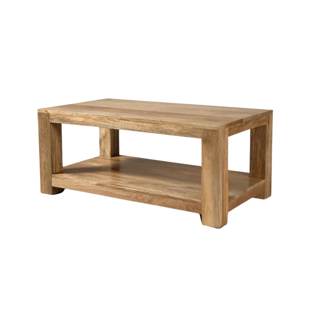 This modern chunky coffee table, available in 3 sizes, with its useful lower shelf is a stylish and practical addition to any living room.