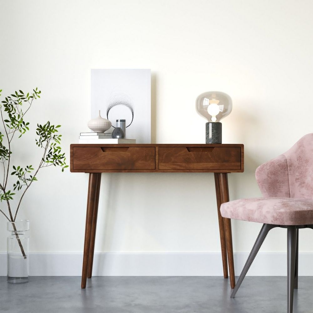 Sleek, simple console table from the Honey collection, with added storage in the two spacious drawers.