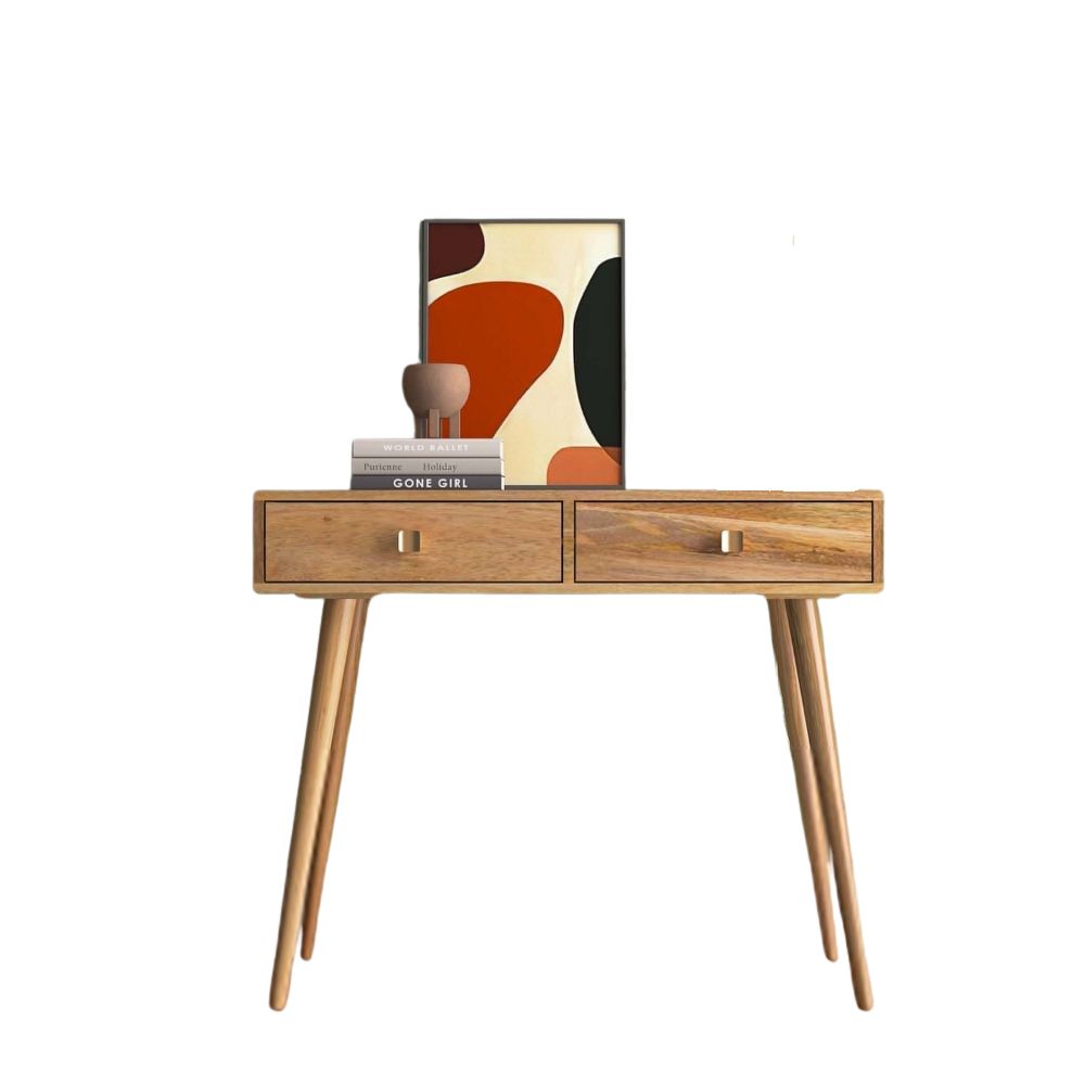 This stylish console table is a charming addition to any living space or hallway. Featuring two spacious drawers, it provides practical storage for keys, mail, or other essentials, keeping your space organised and clutter-free.