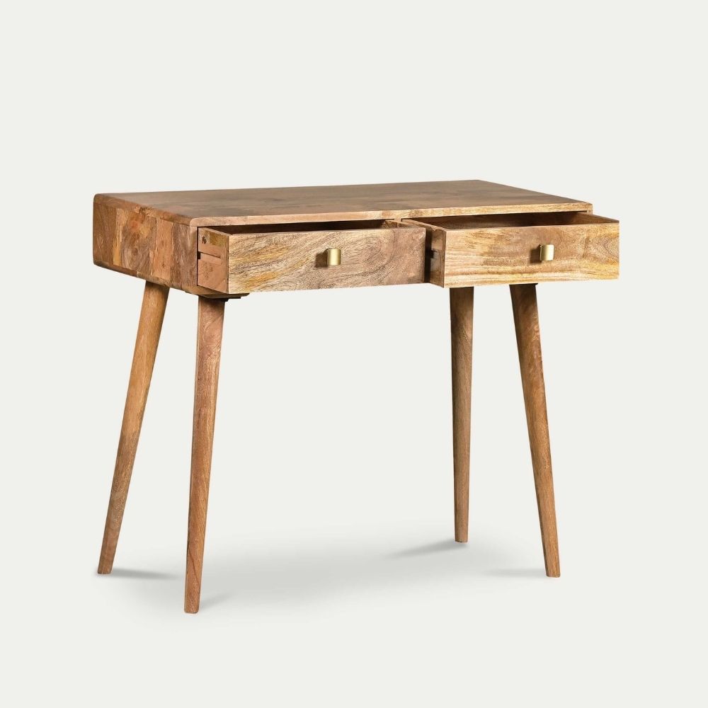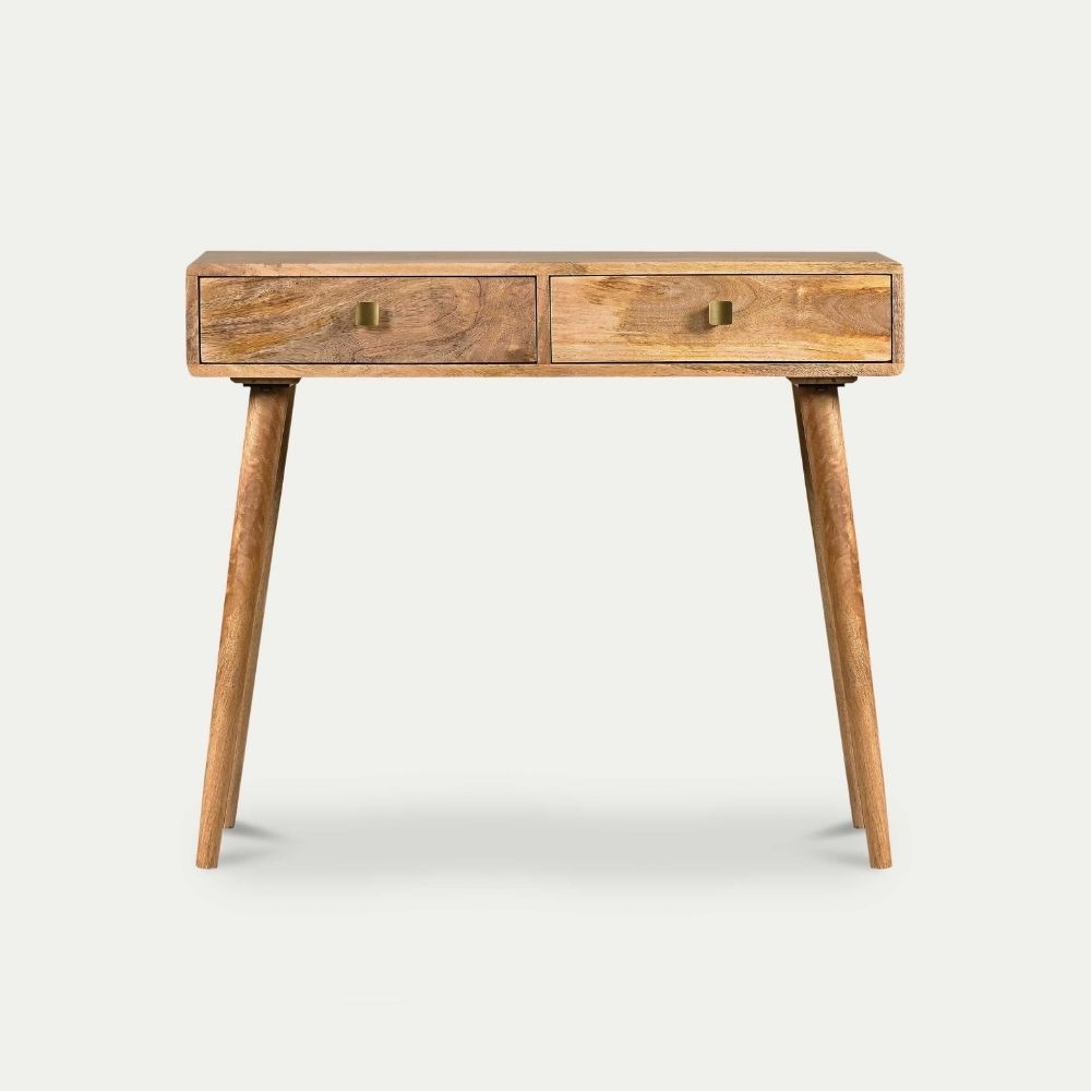 This stylish console table is a charming addition to any living space or hallway. Featuring two spacious drawers, it provides practical storage for keys, mail, or other essentials, keeping your space organised and clutter-free.