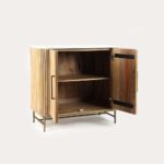 Optimise your space with the Florence Light Mango & Marble Small Sideboard. Crafted from sustainable mango wood in a light, pale finish, this compact design incorporates two doors that conceal a large internal cupboard with a mid-height shelf – perfect for tucking away dinnerware, linens, and other household essentials. Its modest footprint makes it an ideal choice for smaller dining rooms or entryways.