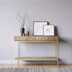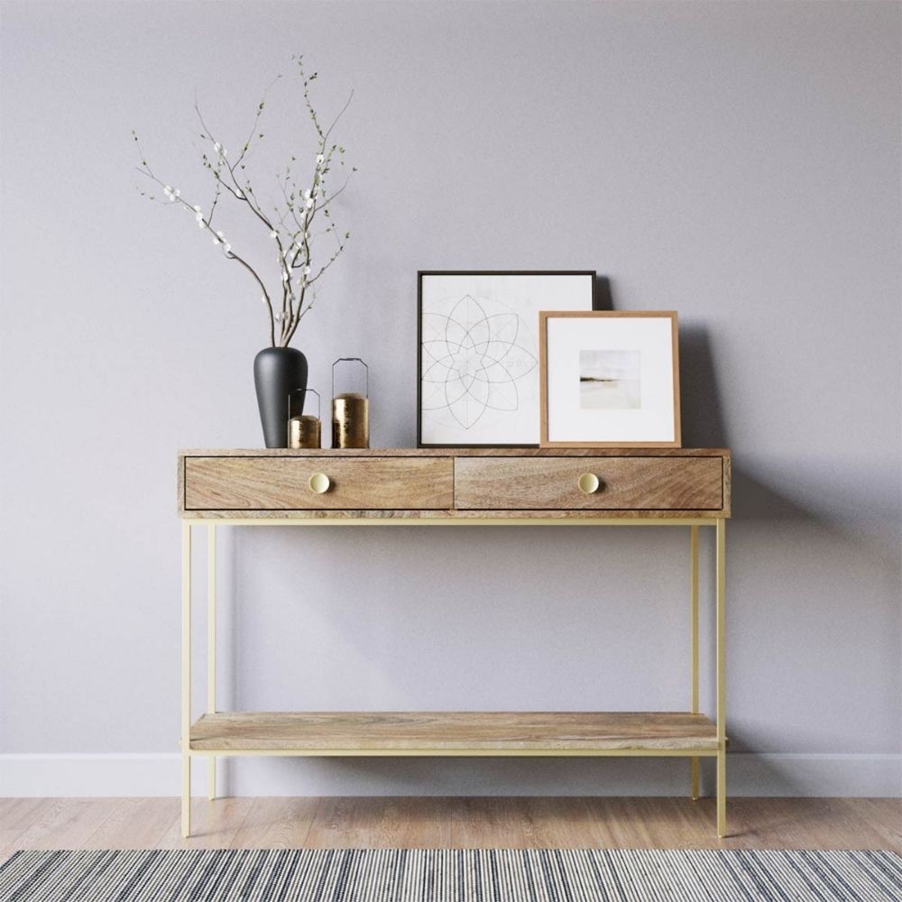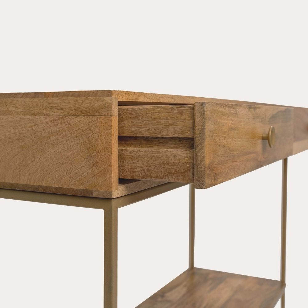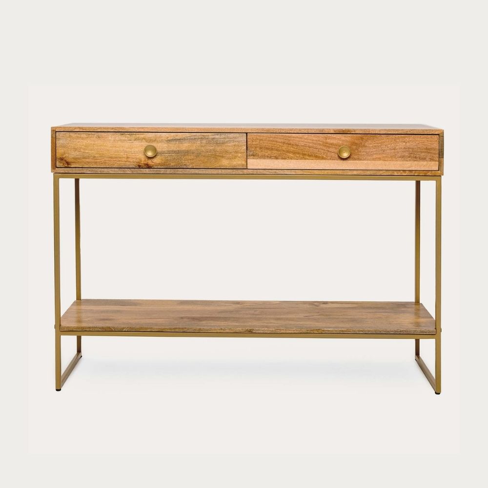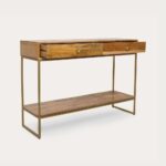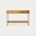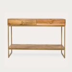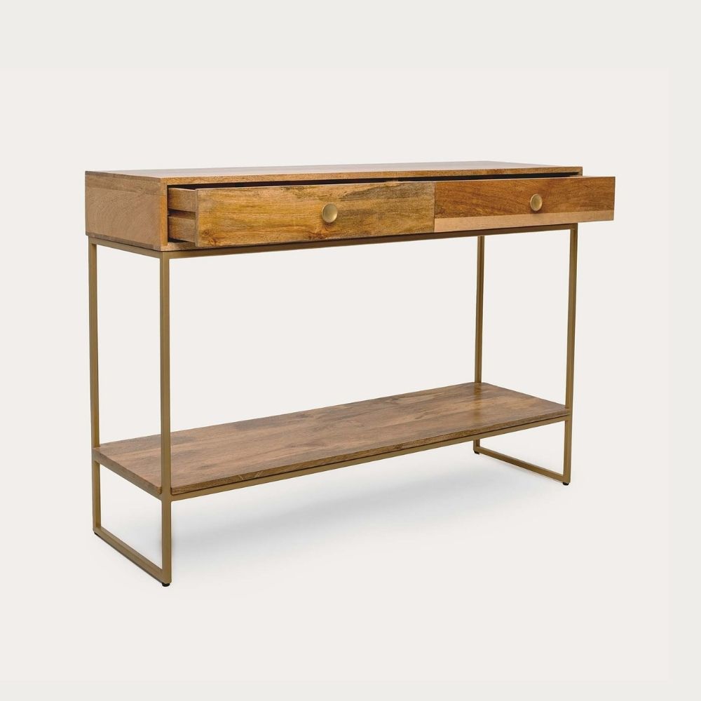 Exclusive bisque-anteater collection features natural, solid mango wood combined with sleek brass-effect metal frames and handles for a stunning, modern blend of contemporary and industrial furniture.